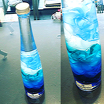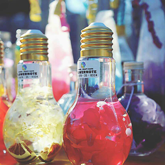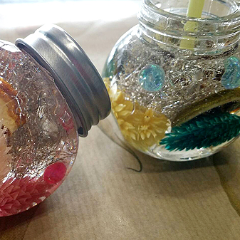 ハーバリウムはガラス瓶の中にプリザーブドフラワーやドライフラワーを入れ、オイルに浸して作られています。