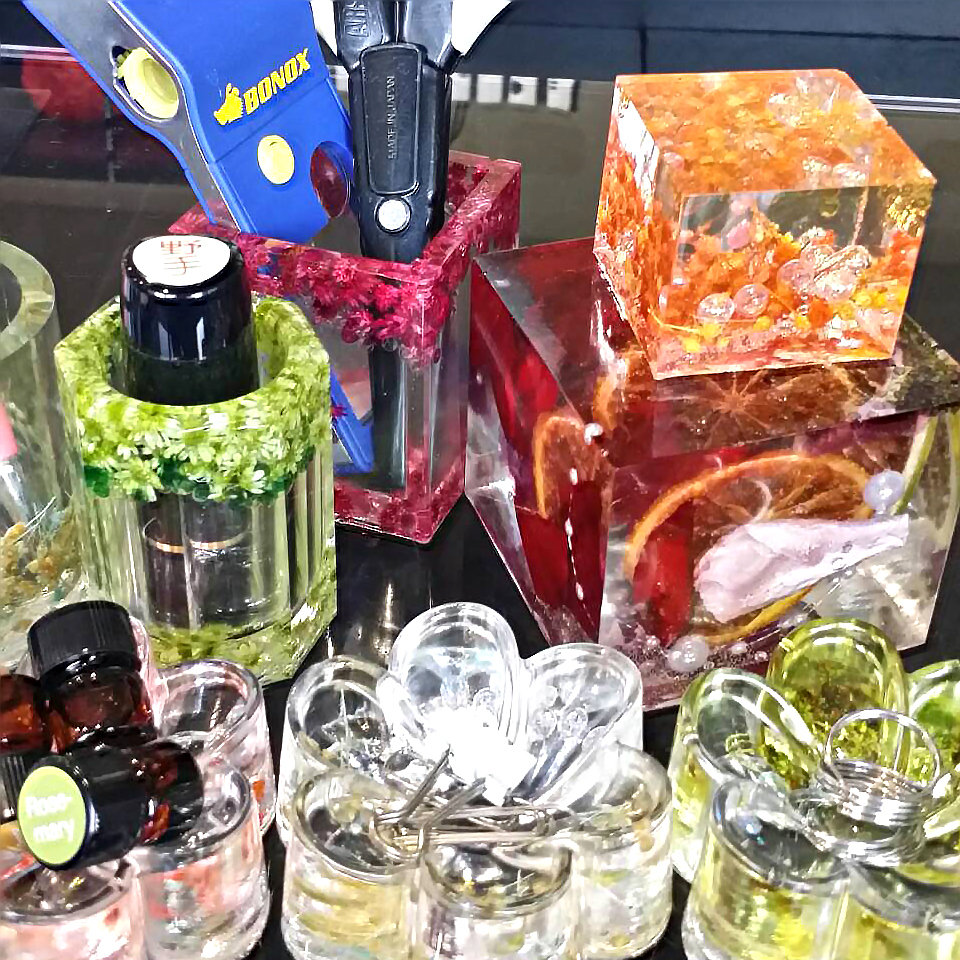 花材等の美しさをそのまま閉じ込めますので、「固めるハーバリウム」とも呼ばれます。