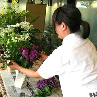 2001年、サーフショップで働いていたが、自分には何の資格も無いと思い、働きながら取得できる資格の本を購入し、インテリアデザイナー、ネイリスト、フラワーデザイナーに興味がわく。自宅から通える範囲の専門学校にすぐに見学に行き、真剣に取り組む生徒の方々に魅了され、更に母が華道に携わっていた影響もあって、「これだ!!」と思いその場で入学したのがフラワーデザイナーの道。それから私の花人生が始まる。